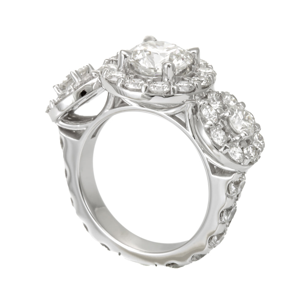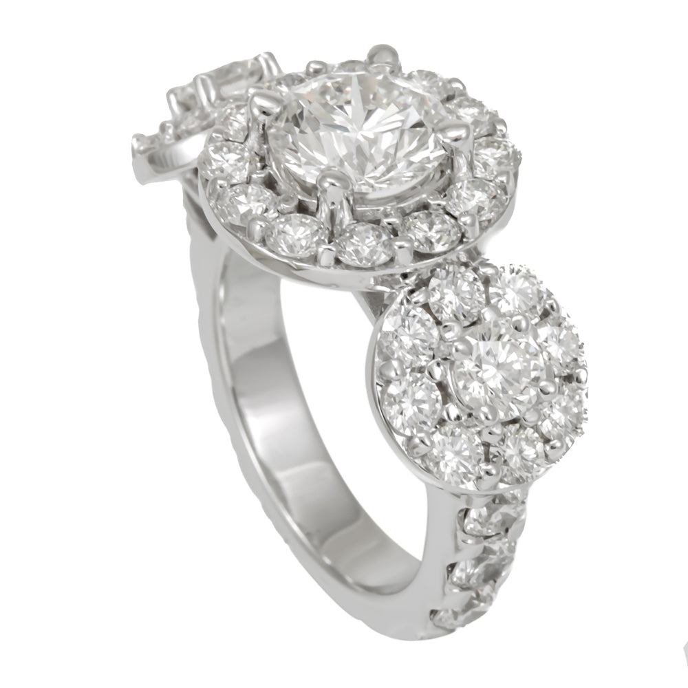 3 Halo Diamond Engagement Ring in 14K White Gold with CZ center