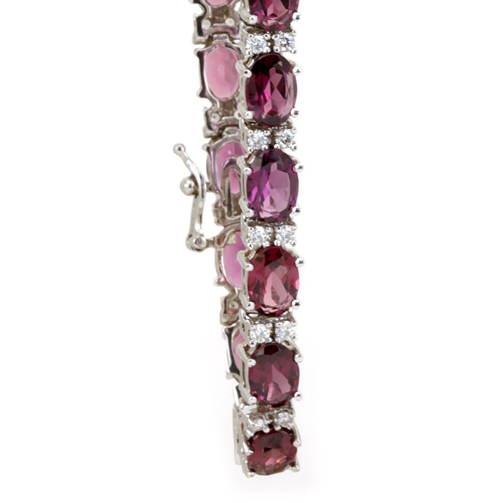 Diamond and Rhodolite Tennis Bracelet in 14K White Gold, Ladies Bracelet, Colored Stone Bracelet