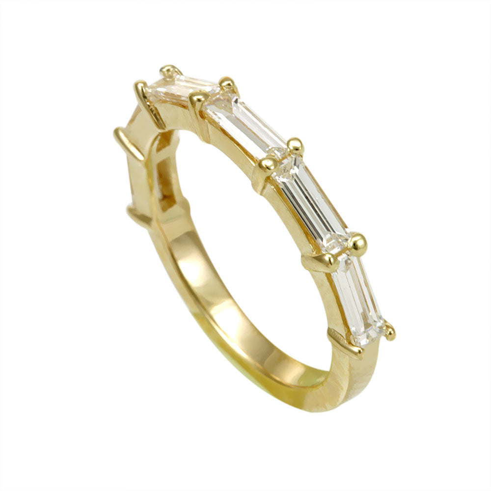 Baguette Diamonds Prong Set 14K Yellow Gold Half Eternity Band, Ladies Rings, Ladies Fine Jewelry