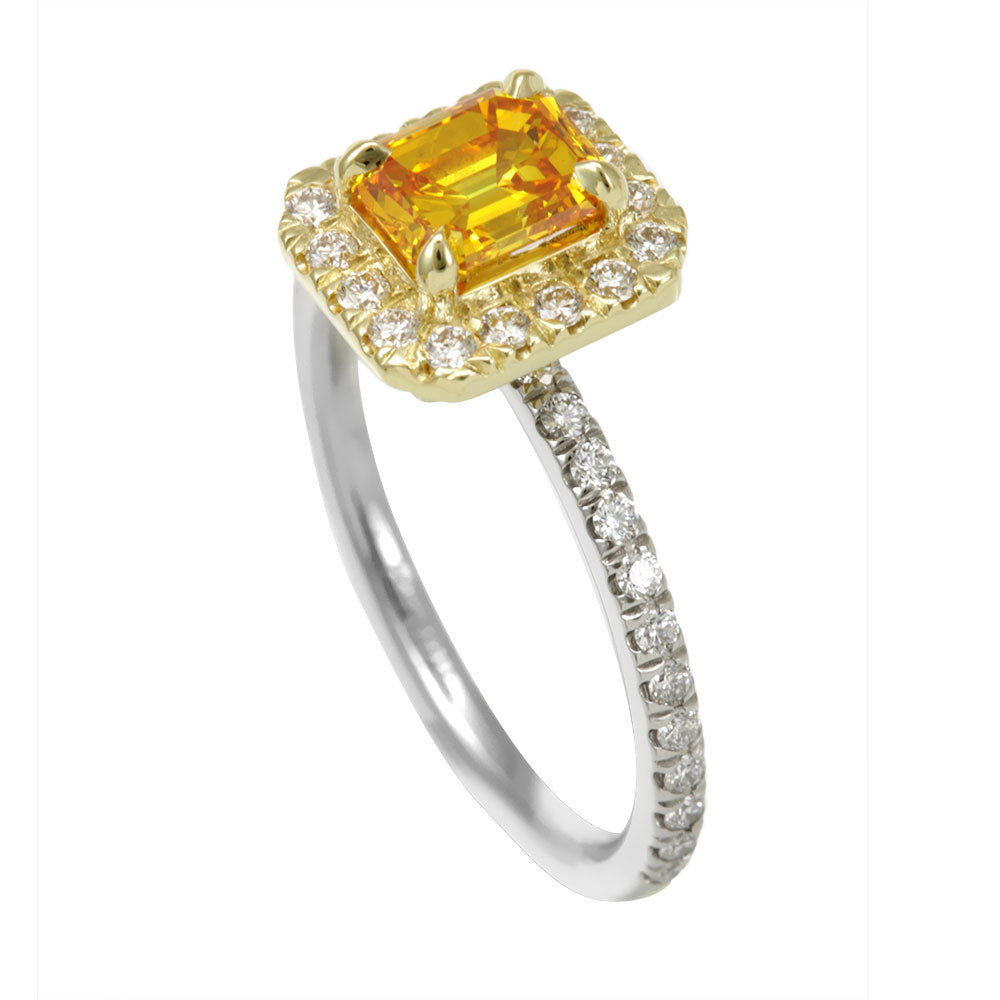 Diamond and Yellow Stone CZ Ring in 14K White and Yellow Gold, Ladies Rings, Ladies Fine Jewelry