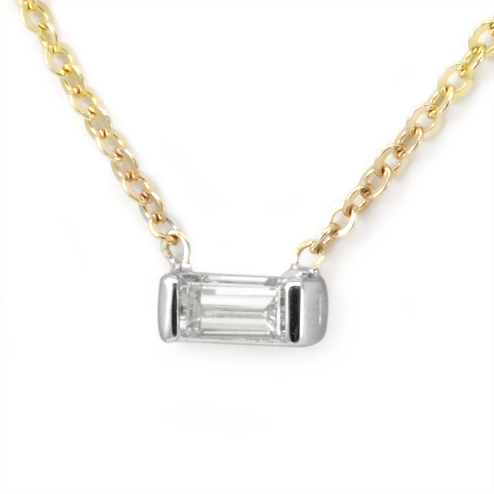 Baguette Diamond Solitaire Pendant Necklace in 14K White and Yellow Gold Ladies Necklace, Bezel Pendant, Ladies Fine Jewelry Draft
